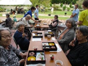 式典からガラッと趣を変え秋空の下で栄養課特製のお祝