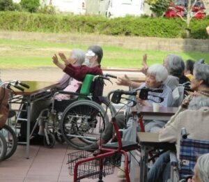 数の少ないご利用者様が、音楽に合わせて手拍子や歌を